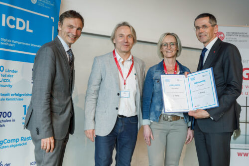 Unter den ausgezeichneten Schulen war auch die „Polytechnische Schule Zwettl“. Mit 352 abgelegten Prüfungen belegt die Schule österreichweit den ersten Platz bei der relativen Wertung. Die Auszeichnung dafür haben Direktorin Eva Maria Rester und ihr ECDL-Koordinator Franz Wallner entgegengenommen. Die Polytechnische Schule Zwettl kann bereits das 20-jährige Jubiläum des ECDLs an der Schule feiern.