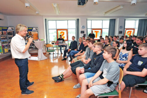 Traditionell ließ Fr. Dir. Rester das letzte Schuljahr Revue passieren und hob die besonderen Highlights hervor.