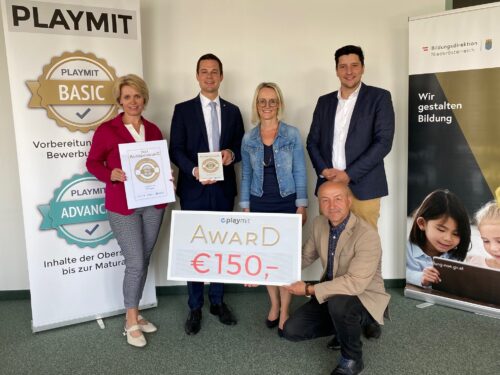 Überreicht wurde der Playmit Award vom Geschäftsführer der Firma Playmit Hubert Hilgert, Bildungsdirektor Karl Fritthum und Marin Skelo von der Industriellen Vereinigung NÖ. Hubert Hilgert gab einen aufschlussreichen Einblick in die Berufsorientierungs-Lernplattform, die den Schülern wertvolle Informationen und Ressourcen bietet, um ihre berufliche Zukunft erfolgreich zu gestalten.