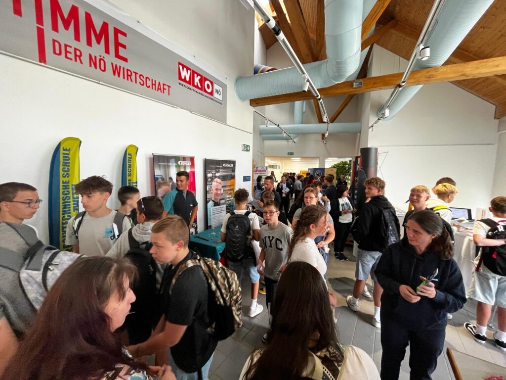 45 Lehrbetriebe aus dem Umkreis und mehr als doppelt so viele Schüler aus der PTS, heuer mit fünf Klassen sowie Schüler der Zwettler Mittelschulen trafen sich beim 18. Betriebetag in der Wirtschaftskammer Zwettl. Jedes Unternehmen konnte sich zu Beginn kurz vorstellen und seine Beschäftigungsfelder präsentieren.